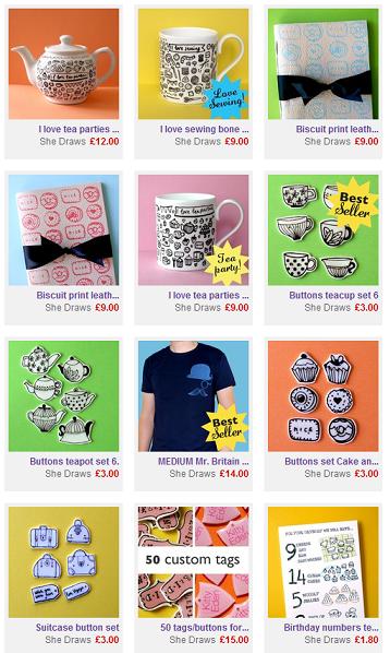 Main site linking Folksy / Etsy / Blog / TwitterThose of you active on Folksy will definitely recognise her work; I first came across her with her entry in the Folksy/Howies competition. She makes adorable things with her illustrations: